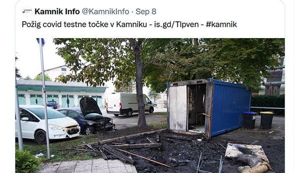 (Ob nočnem požigu cestne covid točke v Kamniku, le pičlih nekaj ur po oddaji Odkrito na tretjem programu TV Slovenija ...)
