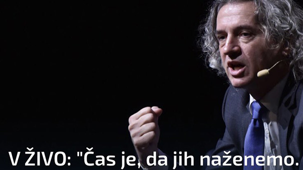 "Golob je tribuno začel z "naženimo jih", in vidno grozil s pestjo ter jeznimi obraznimi grimasami, proti koncu tribune pa govoril o nujnosti povezovanja različnosti ..." (vir: Twitter)